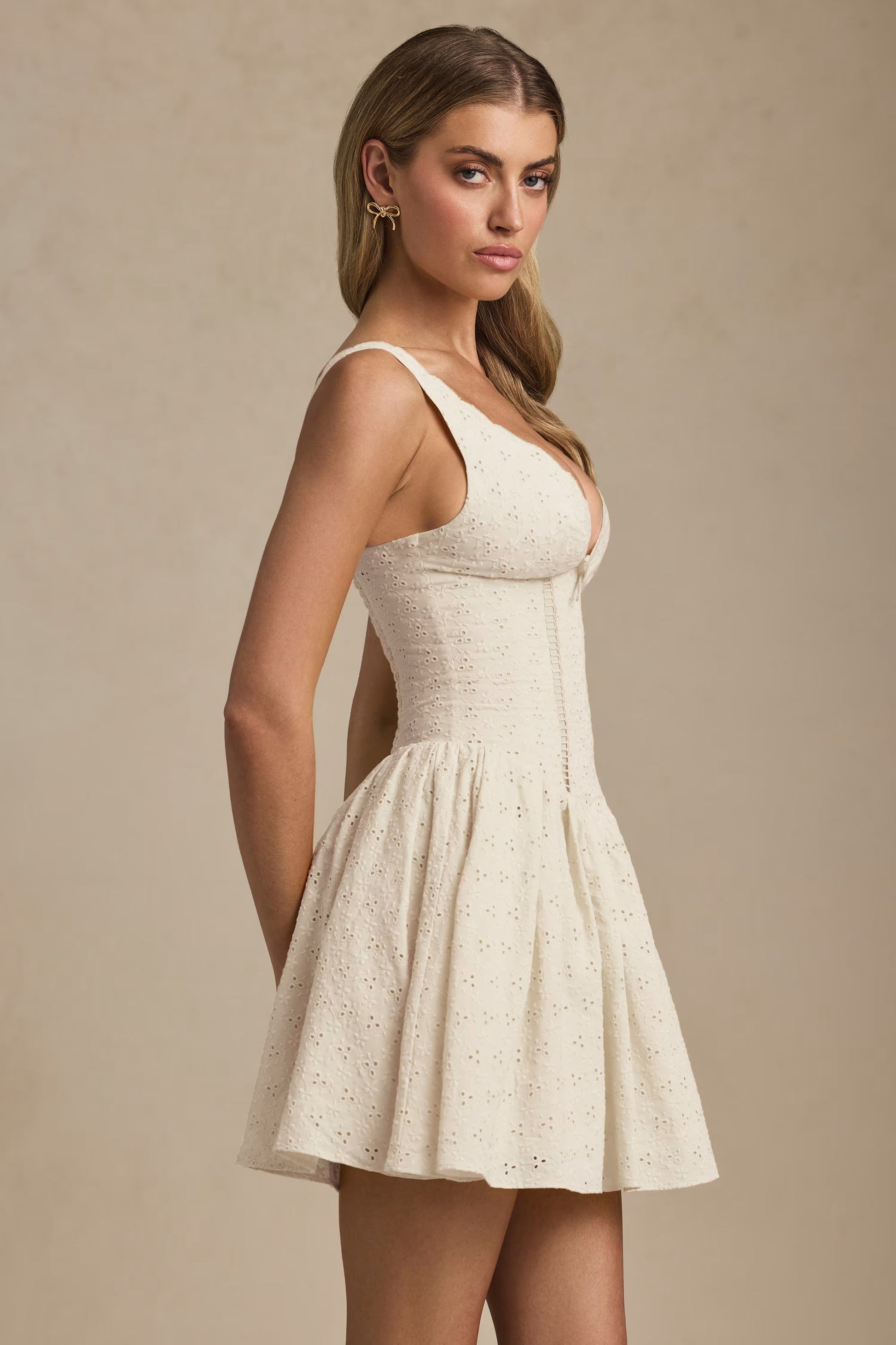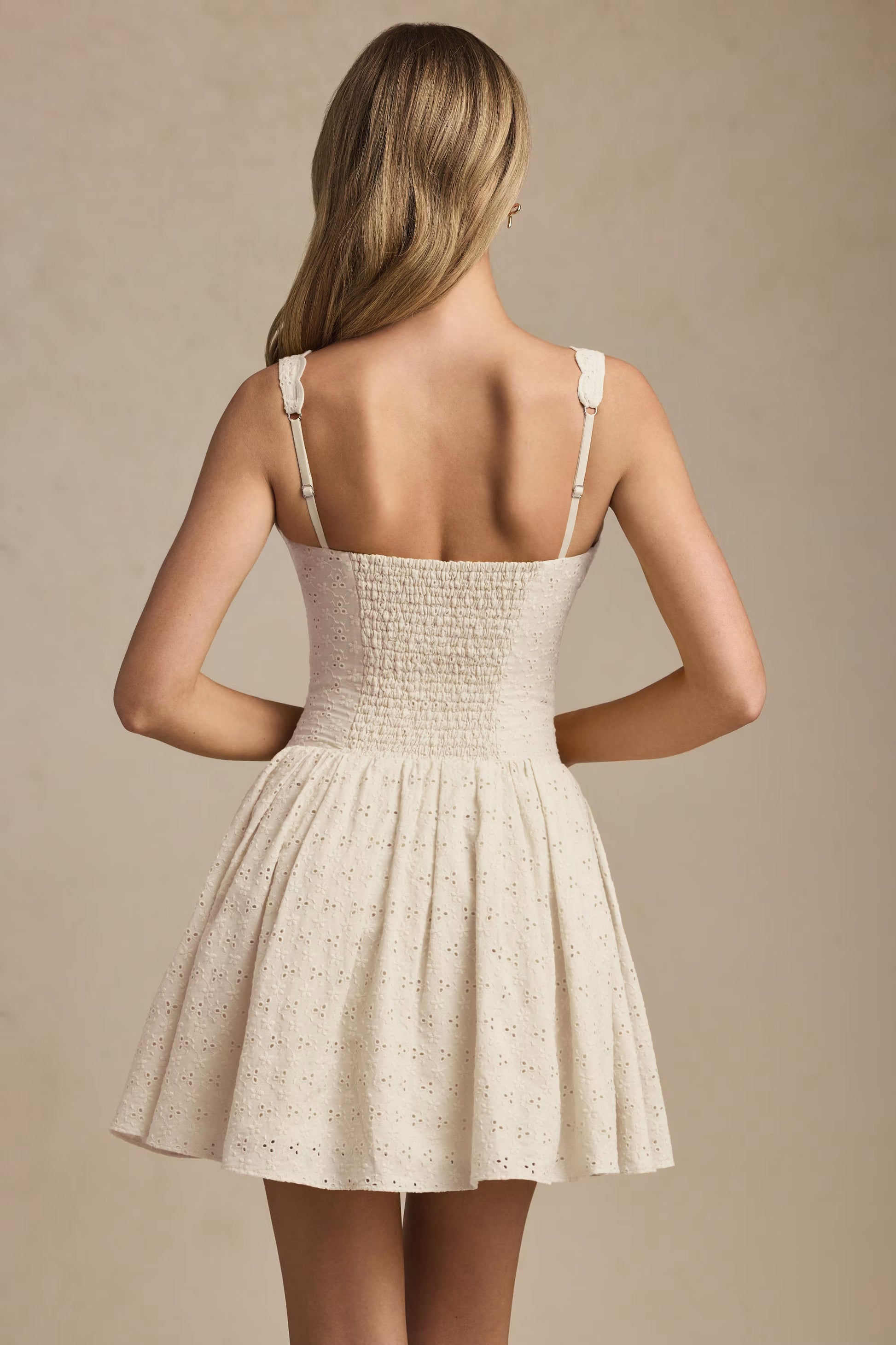 Broderie Anglaise Bow-Detail A-Line Mini Dress in Ivory
