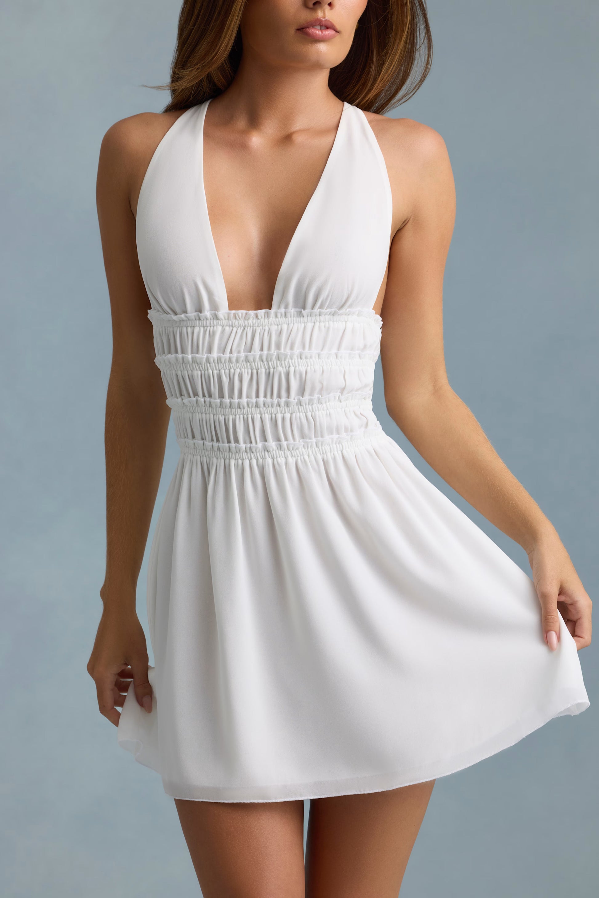 Ready for your special moments, the Tirza mini dress is crafted from premium recycled satin to a figure-hugging silhouette with a built-in boned corset for enhance structure and support. It’s elevated with diagonal draping to create an hourglass shape and is framed with a plunge sweetheart neckline with fully embellished peekaboo cups for a statement look.