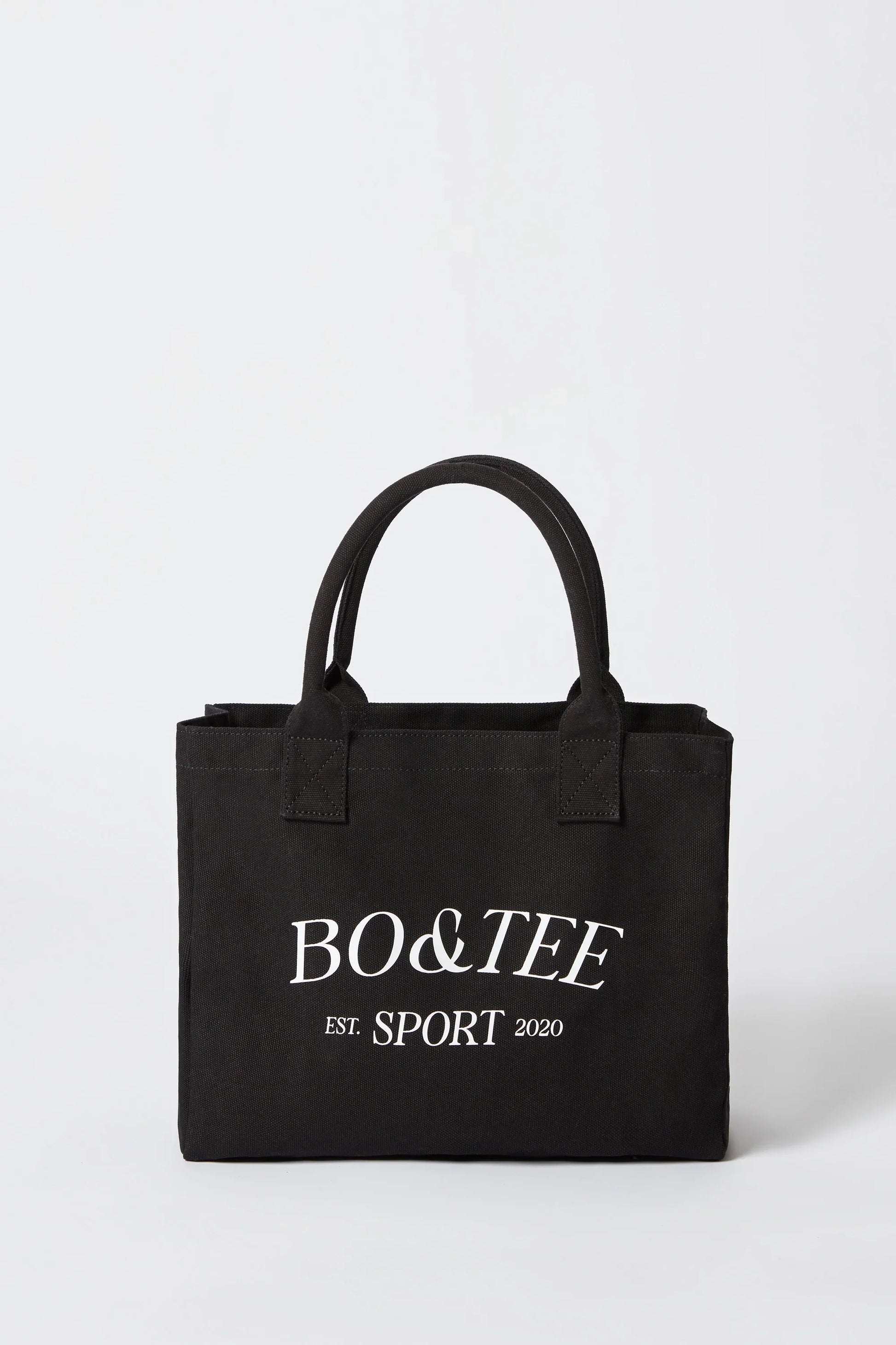 he Sport small tote bag is designed in our premium cotton canvas fabric and features signature Bo+Tee Sport branding printed on the front. With durable dual handles that are designed to last, the Sport small tote bag is an essential accessory perfect for taking your gym wear essentials on the go.