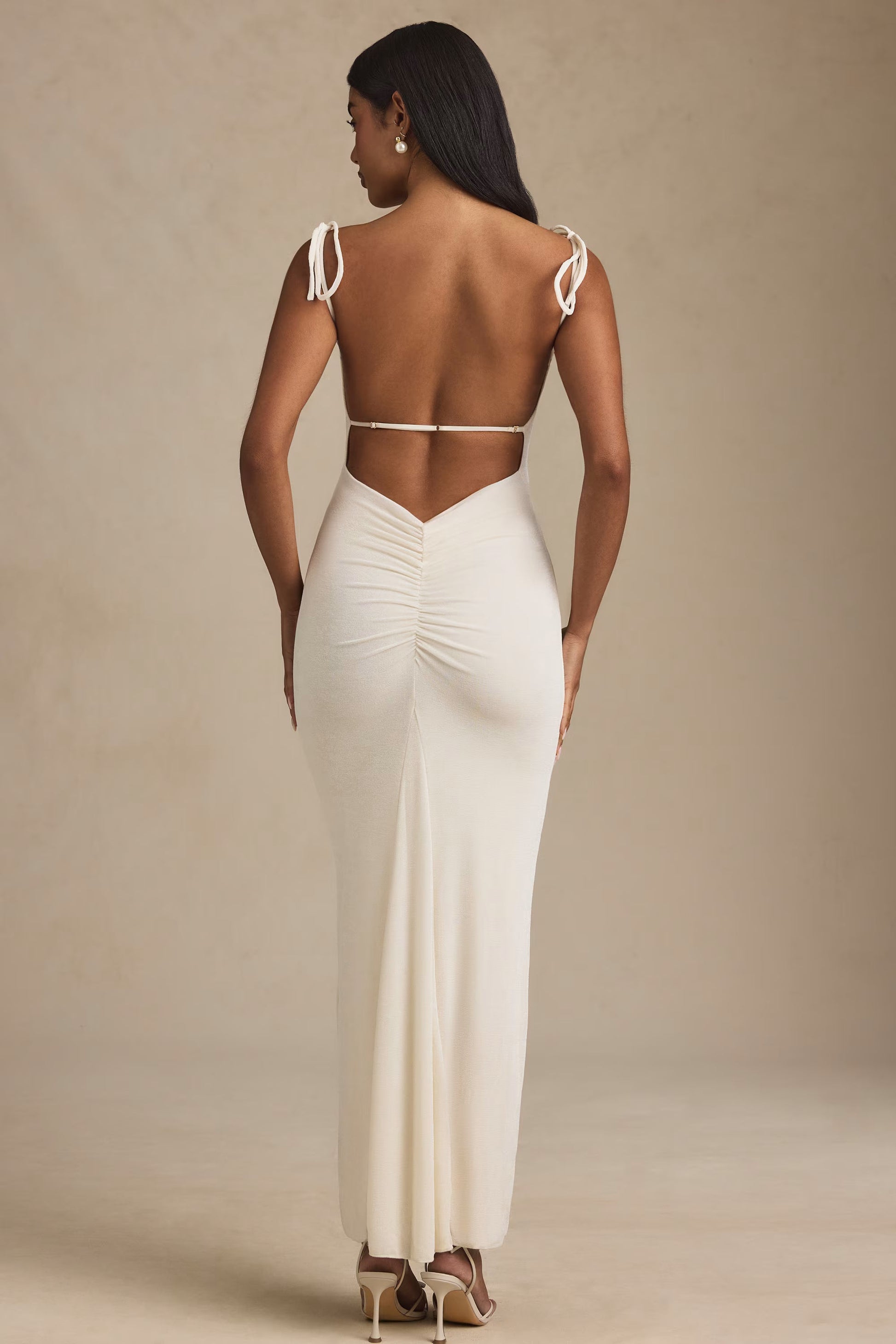 Skin-baring silhouettes for wherever the summer takes you. Designed in our premium textured jersey that’s figure-hugging and stretchy, the Noelia maxi dress is a sculpting style, perfect for intimate dinners and sunset cocktails. Complete with delicate self-tie shoulder straps, a statement open back and shape-enhancing ruching at the rear.